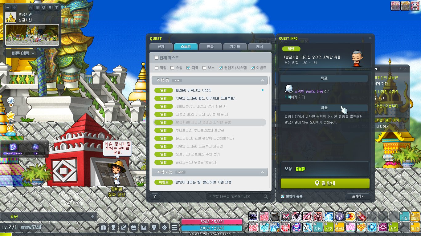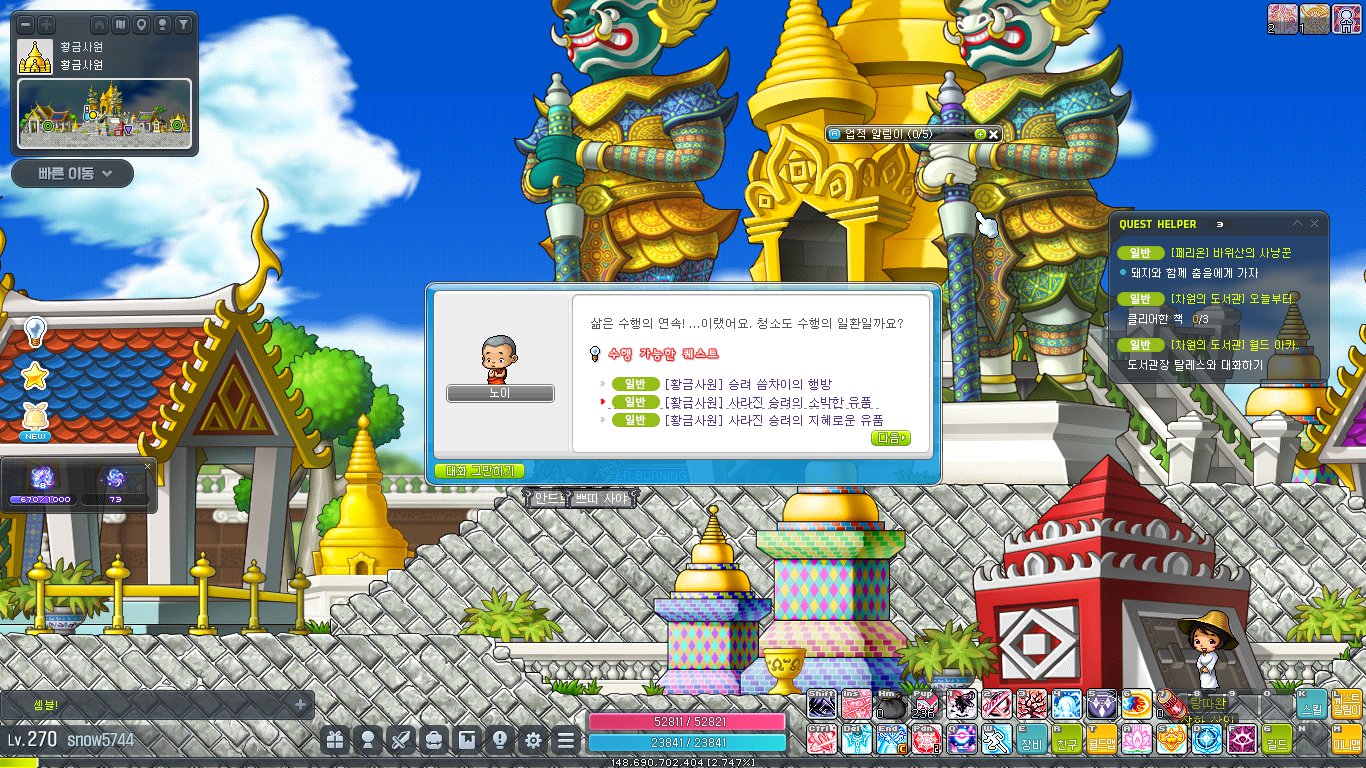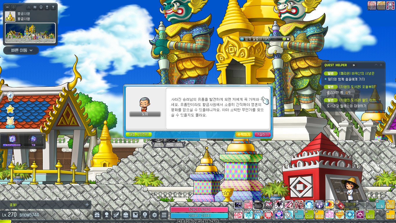 이번 글에서는 메이플스토리 황금사원 퀘스트 공략을 해보려 합니다.