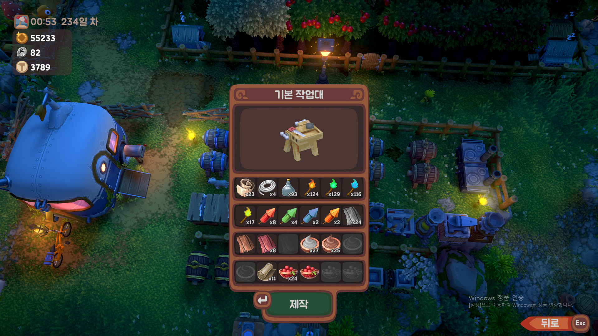 기본작업대는 무조건 설치해야합니다(색상,유리병 재료)