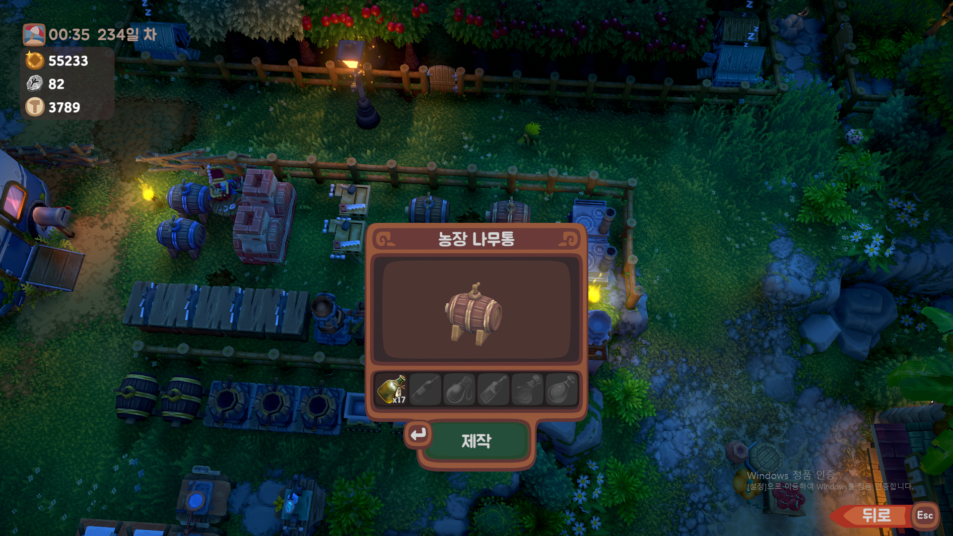 기본작업대는 무조건 설치해야합니다(색상,유리병 재료)